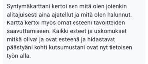 💫 Pakettiin kuuluu tapaamisten välinen tuki viestien välityksellä, omaa energiaa tukevia tehtäviä sekä suunnitelman sinua tukevista seuraavista askelista. Tämä kohta toimii arjen tukena, niin ettet ole yksin tekemässä sinulle tärkeitä asioita. Sinulla voi olla unelmana vaikka yrittäjyys mutta et tiedä miten lähteä etenemään. Minä autan sinua matkalla. Voit raportoida minulle etenemisestäsi. Kun saat aloitukseen tukea, on sinun helpompi laittaa sinulle tärkeitä asioita liikkeelle. Usein tapaamisen jälkeen saat myös minulta uusia näkökulmia, havaintoja ja oivalluksia karttaasi tai kysymyksiisi liittyen. Koen, että usein kartta lähtee avautumaan hiljalleen kun sille antaa aikaa ja huomiota. Tapaamisten välinen yhteys toteutetaan Instagram- tai sähköposti- viesteillä. Viesteihin vastaan 2 arkipäivän kuluessa.